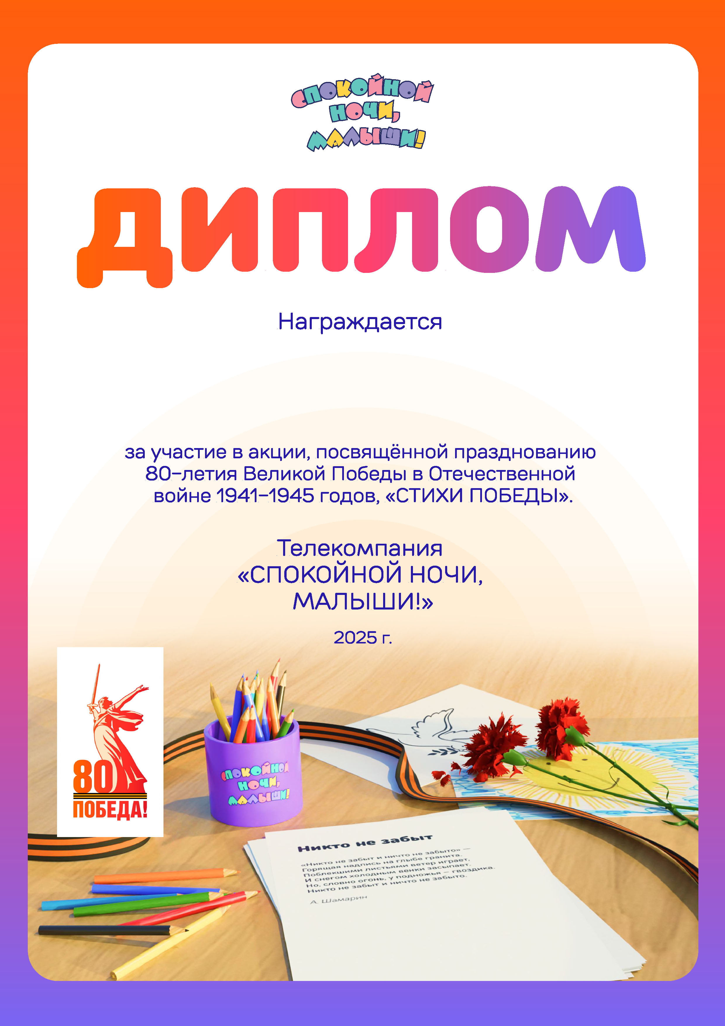 Спасибо за участие в акции, посвящённой празднованию 80-летия